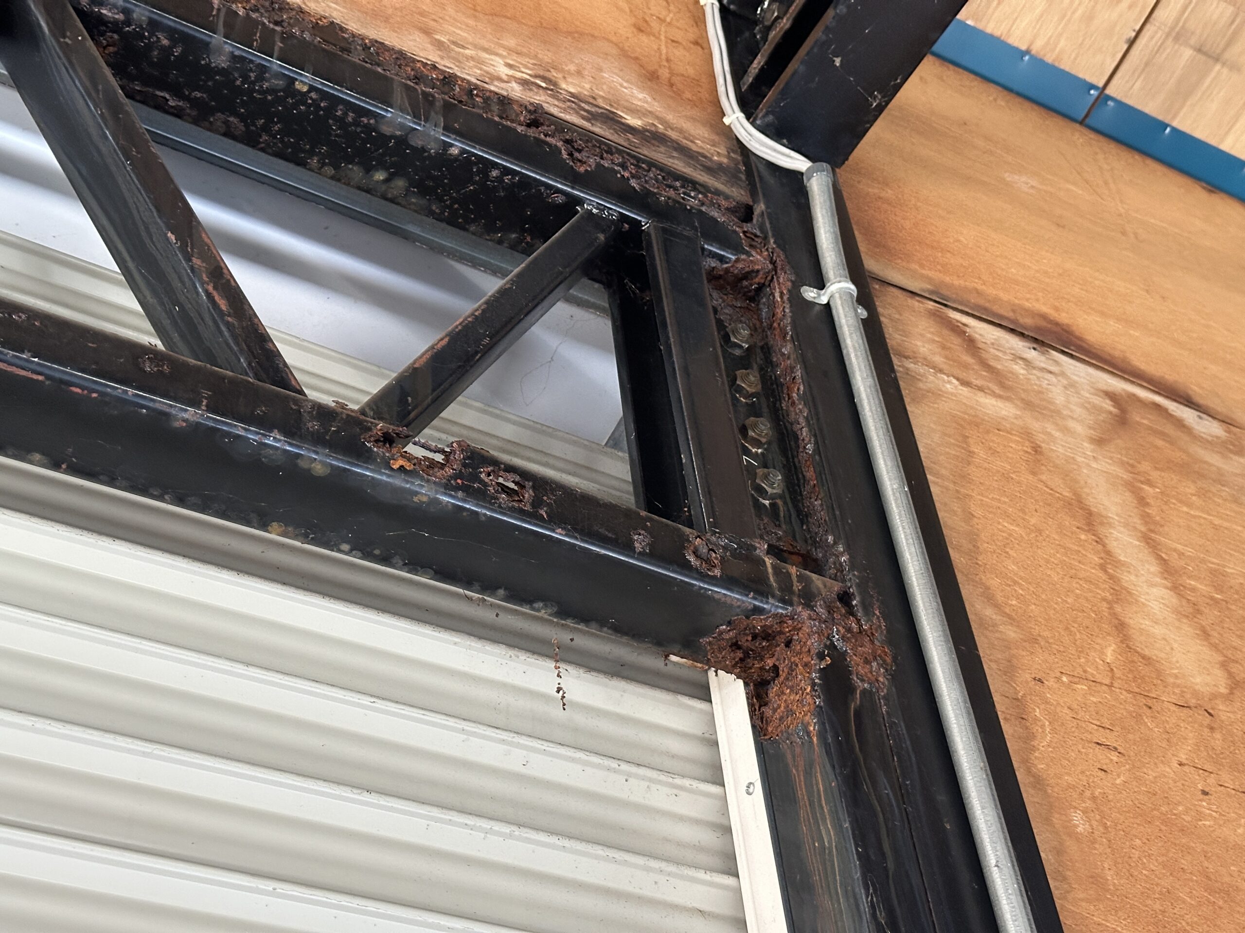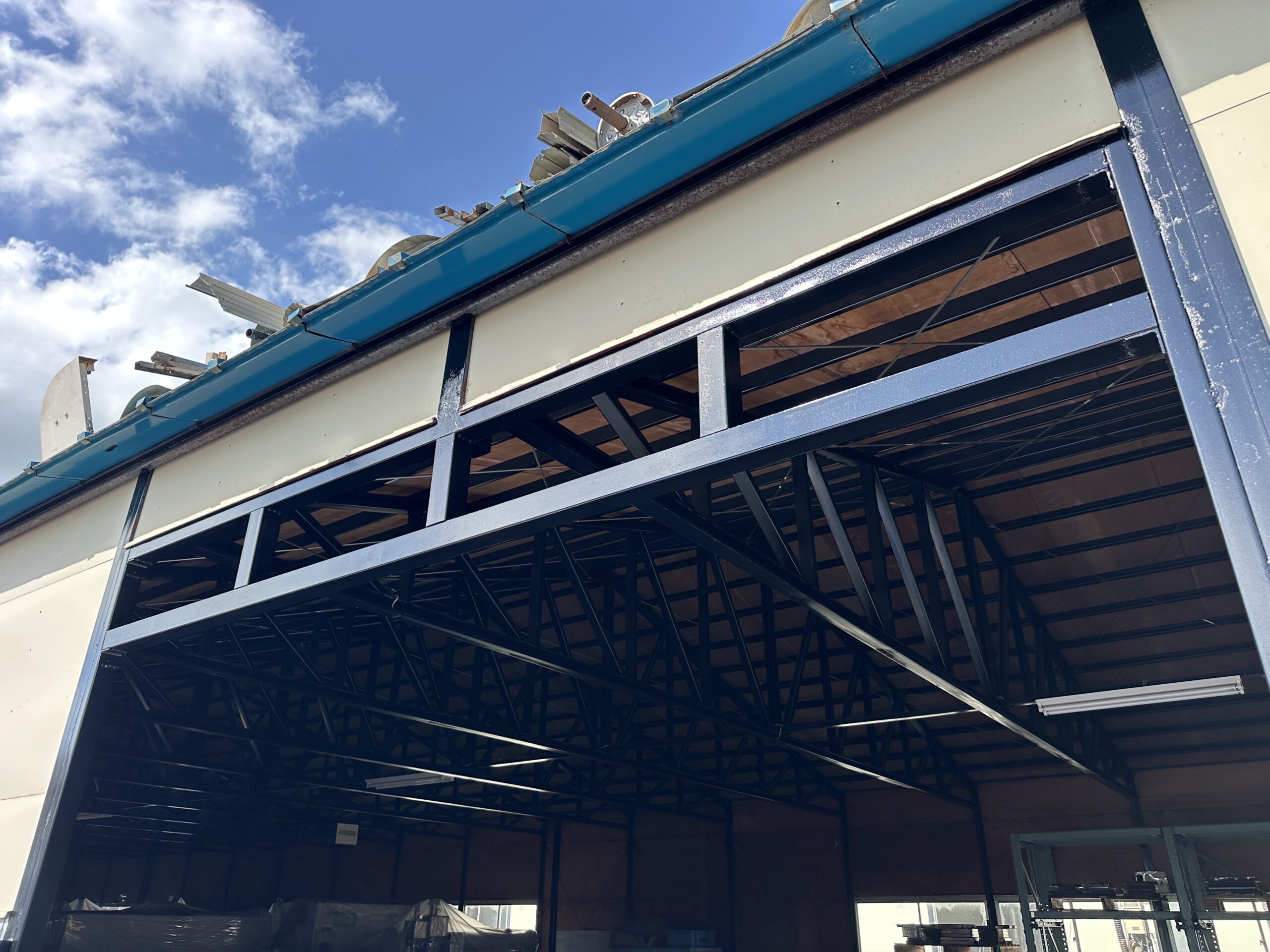 シャッター屋ではありますが、普段から溶接作業を行うため、こういった鉄骨の補強工事も可能です。