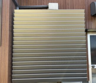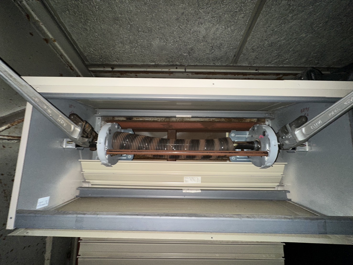 シャッターのスラットを元の位置に戻し、各所の変形直しや外れ直しを行い、動作異常なく通常に使える状態にしました!